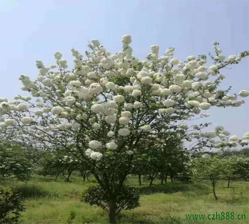 主要用于城市和庭院的綠化樹種,其球花絮如雪球累累,簇擁在橢圓形的綠葉中。聳立在街道兩旁和庭院中構成一種美麗的風景。使其拱形花枝形成花廊;植于庭中堂前,墻下窗前,也極適宜,還可作大型花壇的中心樹。是野生木本花卉及珍貴優良的園林綠化和觀賞樹種,具有很高的經濟和研究價值。