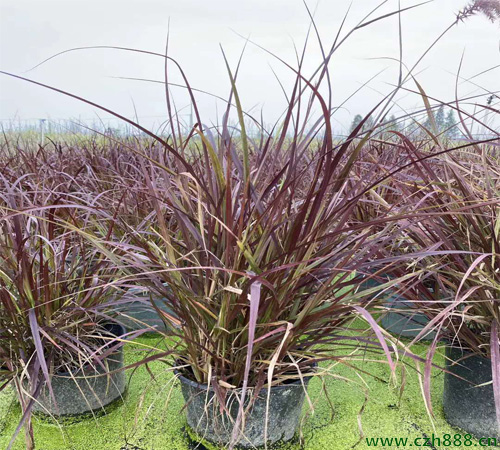 紫穗狼尾草多年生草本植物,暖季型,叢生,株高80~140厘米,葉片長15~50厘米,寬2~6毫米。穗狀圓錐花序,長12~26厘米,直徑1.5~2.0厘米,紫色剛毛。花期7~10月。喜光、耐高溫,耐旱。耐寒性強,不耐蔭蔽。不擇土壤,水肥過大容易倒伏?;ㄐ蛲怀鋈~片以上,如噴泉狀,具有極佳的觀賞價值??勺鳛閳@林景觀中的點綴植物,亦可片植。最佳觀賞期:6~10月。
