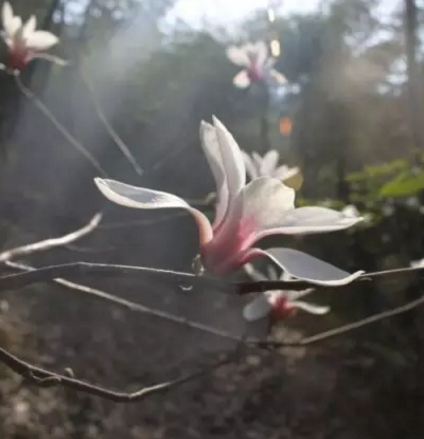 紫玉蘭也叫辛夷,一直安靜地開在山中。玉蘭的花期是短暫的,生命來的時(shí)候就預(yù)約了走。山野里的寶華玉蘭,用一片片瑩潔擎起了滿樹繁華,她們?cè)诖猴L(fēng)中綻放著圣潔、挺拔、詩意。