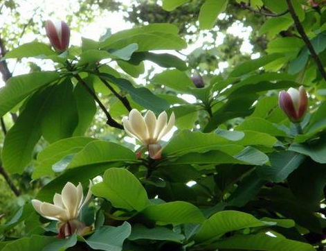 每年4月中上旬,厚樸枝頭吐露花蕾。它的花被片分兩輪,外輪花被片略帶紅色,早早的就向外展開了。內輪花被片潔白柔軟,看起來好像一顆美味的雪媚娘,勾起路人的食欲。