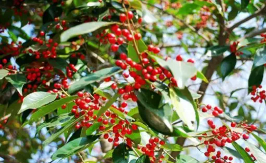紅果冬青(llex.purpueaHassk)常綠喬木,結紅果,紅色的果實在樹上停留的時間長,一般從當年的10月延長到第2年的 4~ 5月 ,高達20m。樹形整齊。小枝無毛,有縐溝紋。樹干通直。樹皮灰青色,平滑不裂。單葉互生,葉片革質,卵形、卵狀橢圓形或卵狀披針形、長5~11cm,先端漸尖,疏生淺齒,葉柄常淡紫紅色,葉面深綠色,有光澤,雌雄異株。聚傘花序生于當的生枝葉腋,花淡紫紅色。核果橢圓形、深紅色。花期5~6月,果熟10~11月。