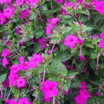 紫茉莉雖然是草本花卉,但修剪也很重要,如疏于修剪,植株就會瘋長,不僅觀賞效果不好,而且還容易倒伏。對紫茉莉進行修剪,一是要控制其長勢,定期對其進行摘心,防止其生長過高,經過摘心處理的枝條節間短而粗壯,花多花大。二是要對其進行疏枝,枝條過多容易造成株型繁亂,不利于觀賞,還容易遭受病蟲侵害,在栽培時對過密的枝條進行疏枝可以使植株通風透光,株型美觀。