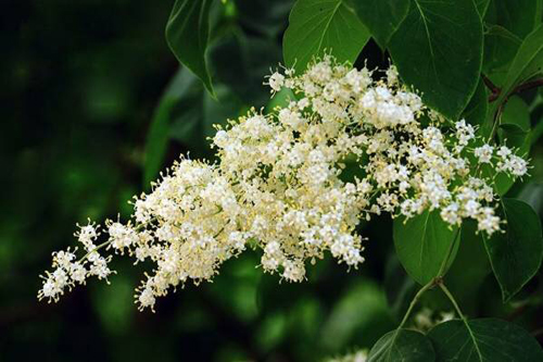 暴馬丁香花期5月,圓錐花序由1到多對著生于同一枝條上的側芽抽生,長10-20(-27)厘米,寬8-20厘米;花序軸、花梗和花萼均無毛;花序軸具皮孔;花梗長0-2毫米;花萼長1.5-2毫米,萼齒鈍、凸尖或截平;花冠白色,呈輻狀,長4-5毫米,花冠管長約1.5毫米,裂片卵形,長2-3毫米,先端銳尖;花絲與花冠裂片近等長或長于裂片可達1.5毫米,花藥黃色。