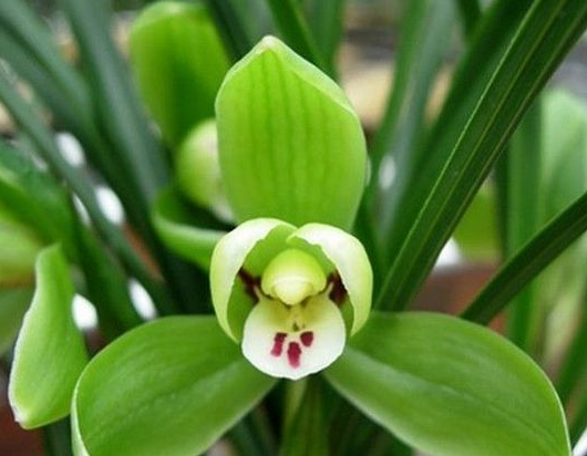 5.建蘭的葉甲周圍徑比較粗大并且伴有紅絲,春蘭則比較細圓而很少有紅絲。