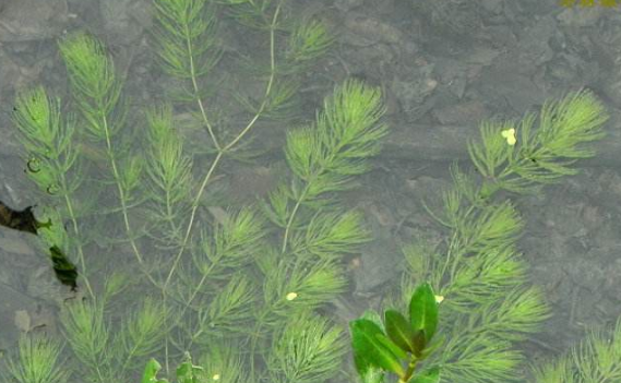 金魚藻是多年生草本的沉水性水生植物,別名細草、軟草、魚草。全株暗綠色。莖細柔,莖長40-150厘米,平滑,具分枝。葉輪生,每輪6-8葉;無柄;葉片2歧或細裂,裂片線狀,具刺狀小齒。花小,單性,雌雄同株或異株,腋生,無花被;總苞片8-12,鉆狀;雄花具多數雄蕊;雌花具雌蕊1枚,子房長卵形,上位,1室;花柱呈鉆形。小堅果,卵圓形,光滑。花柱宿存,基部具刺。花期6-7月,果期8-10月。