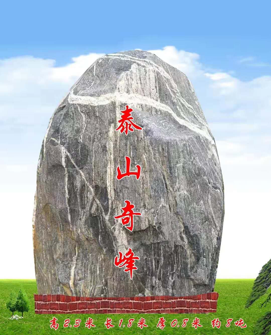 泰山石以其古樸、蒼勁、凝重的格調名揚海內外,又加上民間有泰山石能避邪、鎮宅等傳說,取穩如泰山,石來運轉之意,近年來已成為炙手可熱的風水石,泰山石敢當就是其中之一。景觀奇石是不可再生的寶貴,本公司對外銷售的景觀奇石都是天然形成的原石,其價格更是無法用金錢來衡量的。天然原石,做工精細,種類繁多,免費刻字,歡迎您實地考察,參觀,可私人定做,貨到付款。詳情請來電咨詢13372051355 -- 17802578711